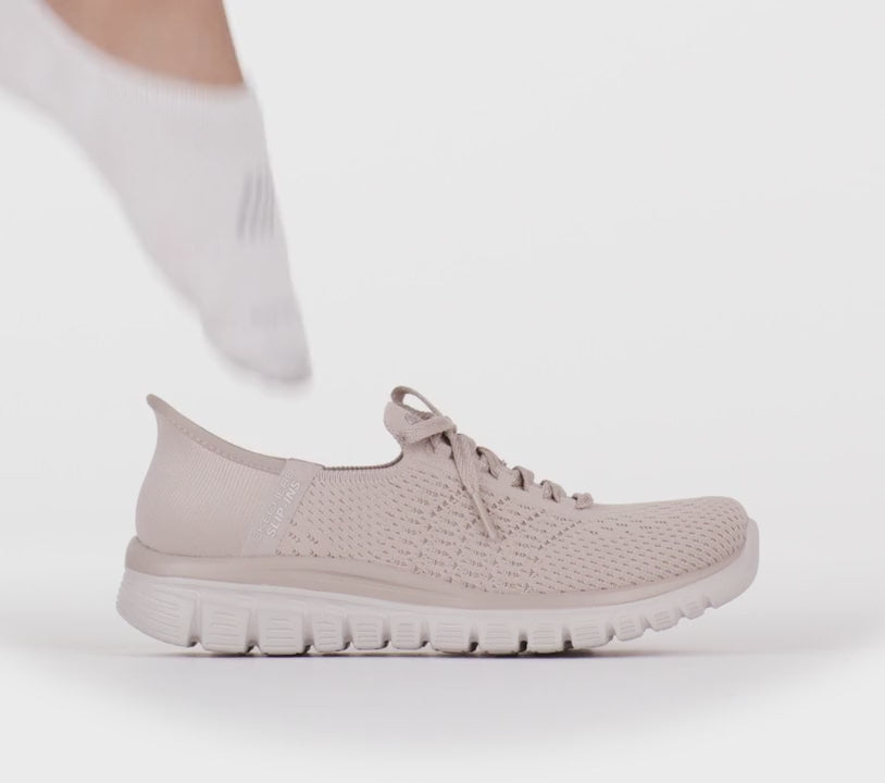 Grace your feet with easy-wearing comfort in Skechers Hands Free Slip-ins Graceful - First Blush. Designed with our exclusive Heel Pillow, this No Tie Fit style features a Stretch Fit engineered knit upper, deco laces and a cushioned Skechers Air-Cooled Memory Foam insole.