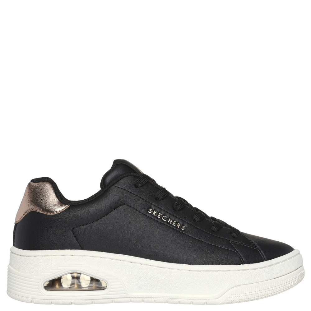 An iconic classic gets a fresh update in Skechers Street™ Uno - Courted Air. This lace-up court style sneaker features a synthetic duraleather upper with metallic trim, a Skechers Air-Cooled Memory Foam® insole, and a visible Skech-Air® airbag midsole.
